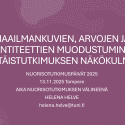 Pidin esitelmän ”Maailmankuvien, arvojen ja identiteettien muodostuminen pitkittäistutkimuksen näkökulmasta” nuorisotutkimuspäivillä marraskuussa 2025 Tampereen yliopistossa. Esitys pdf muodossa.